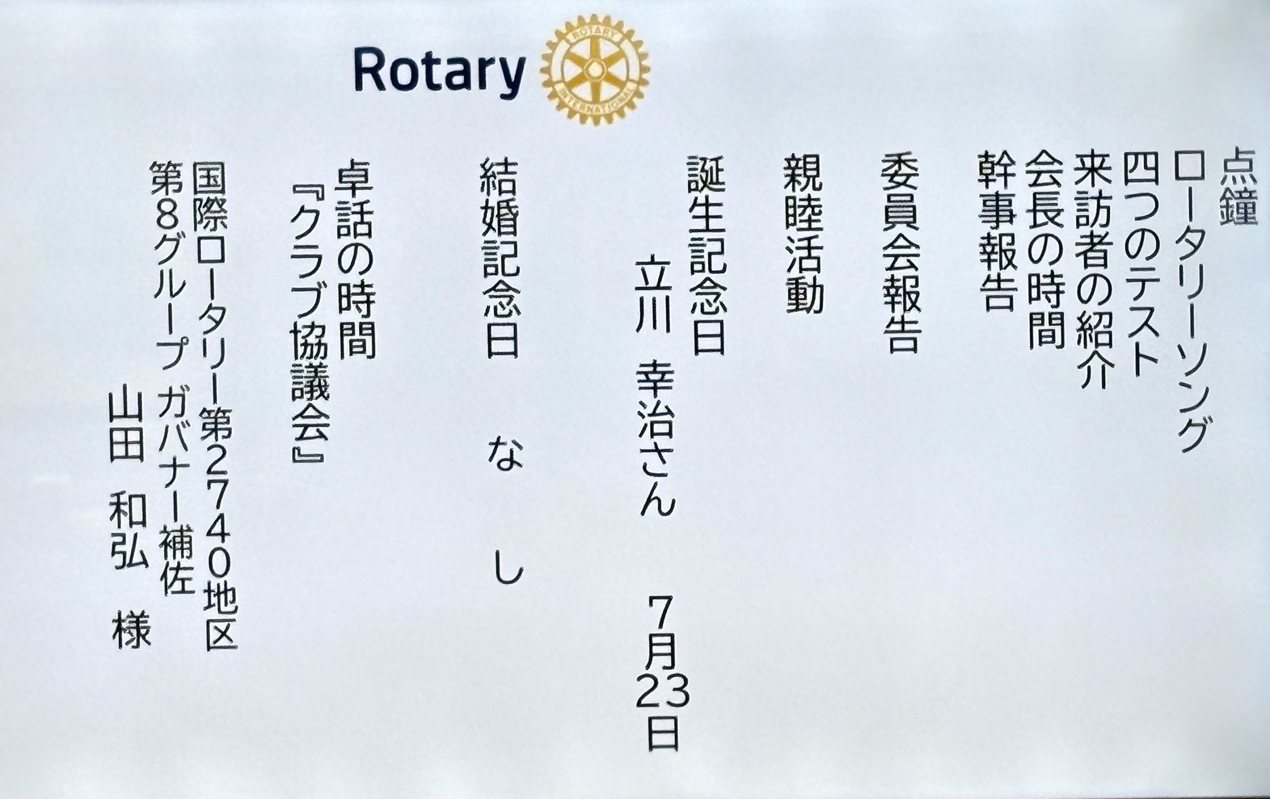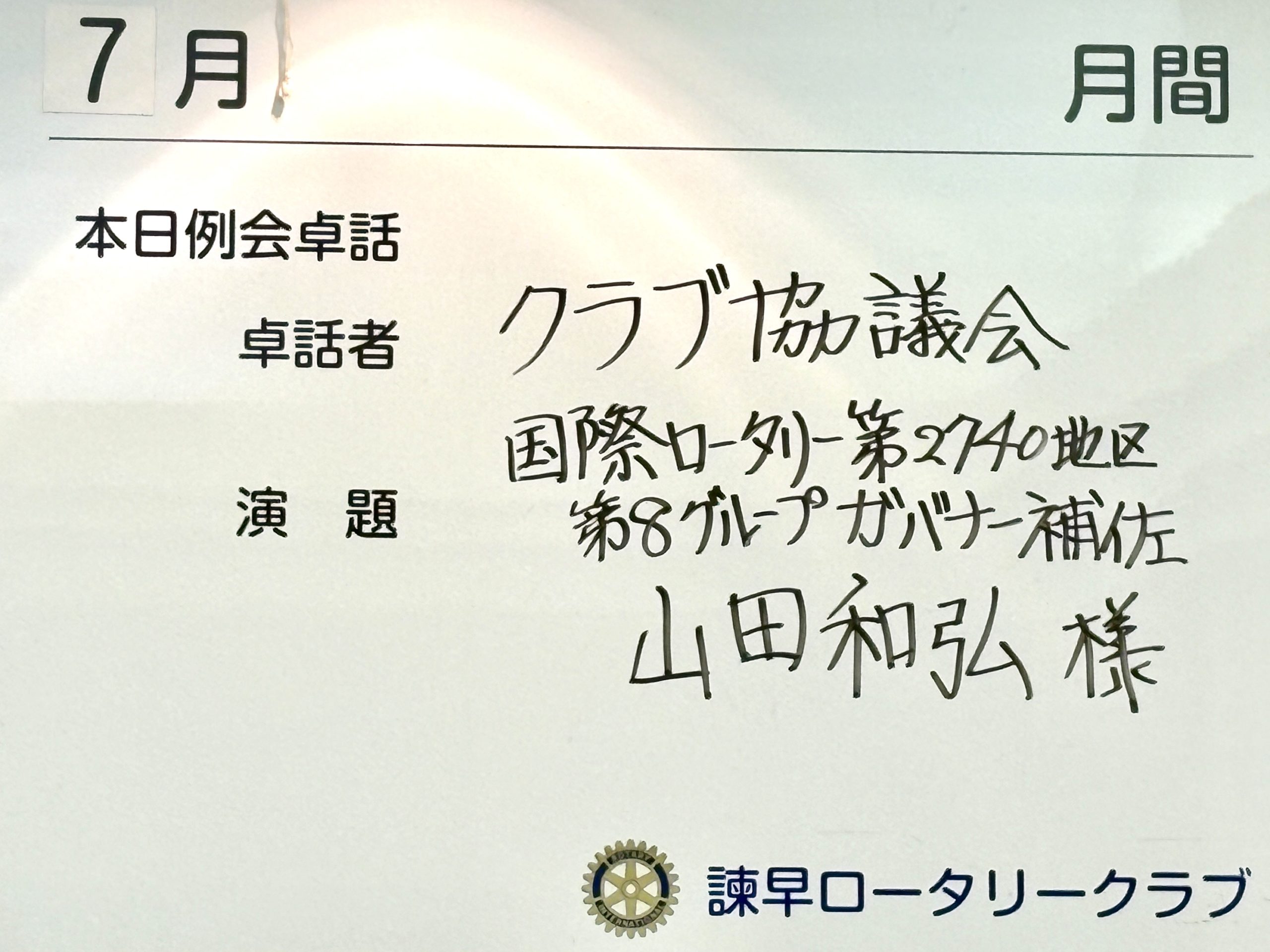 7月18日 第3077回例会 クラブ協議会 ガバナー補佐訪問例会