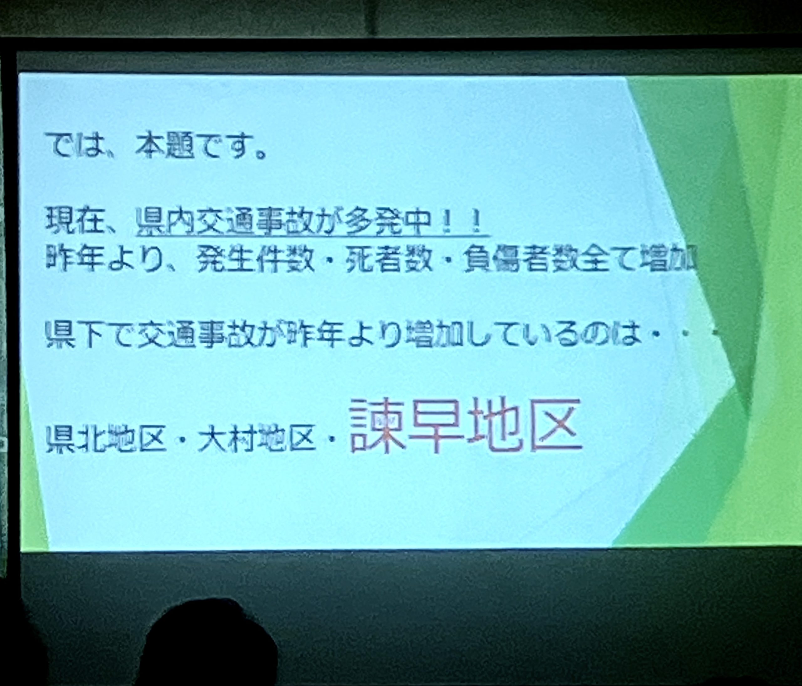 演題『高齢者の交通事故防止・諫早から広げよう 交通安全の輪』