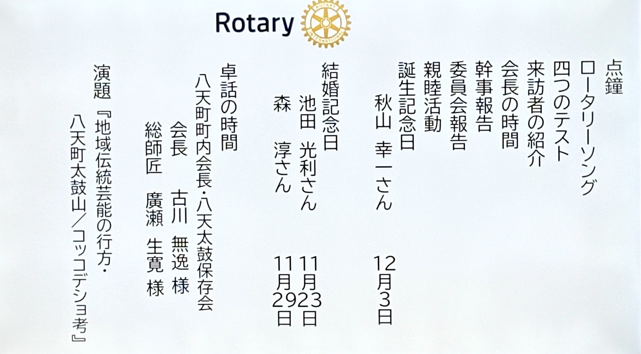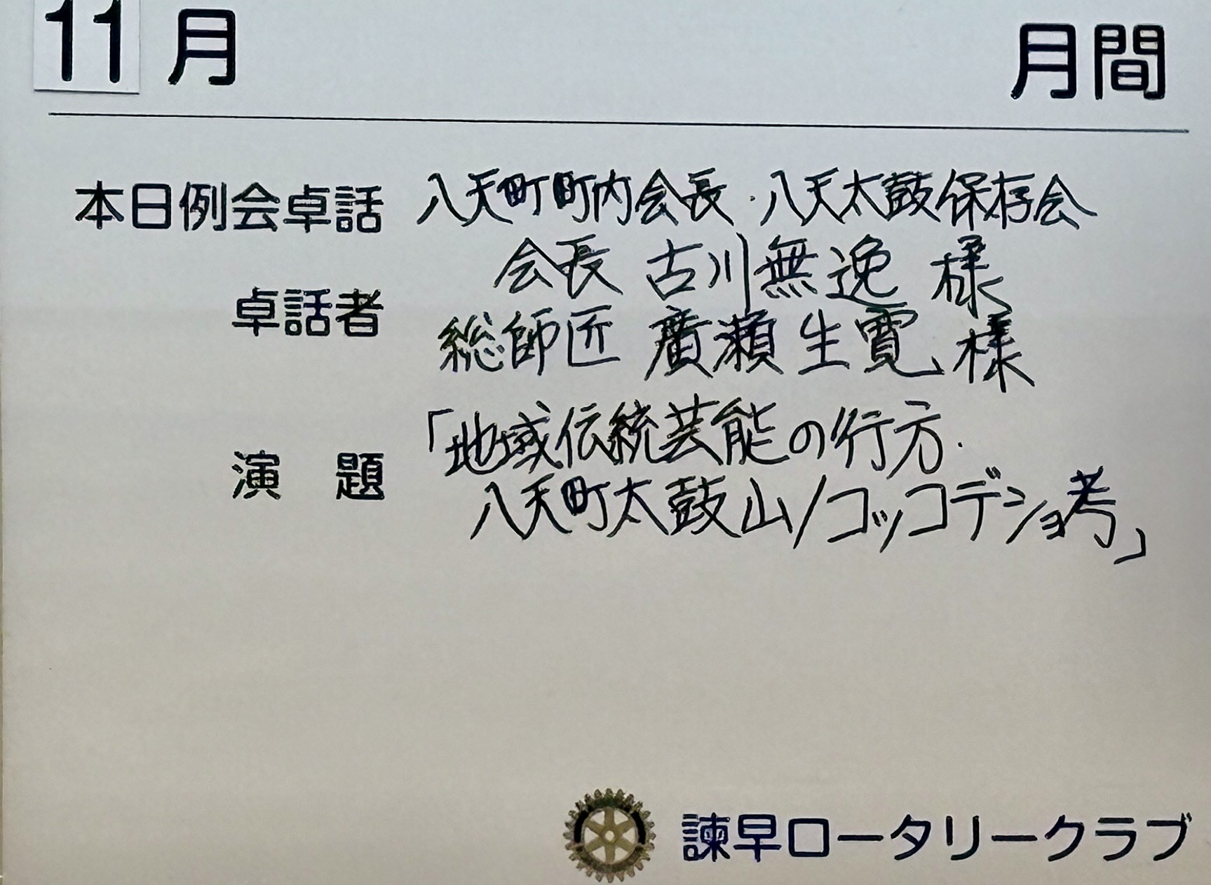 【卓話者】 八天町町内会長・八天町太鼓山保存会会長