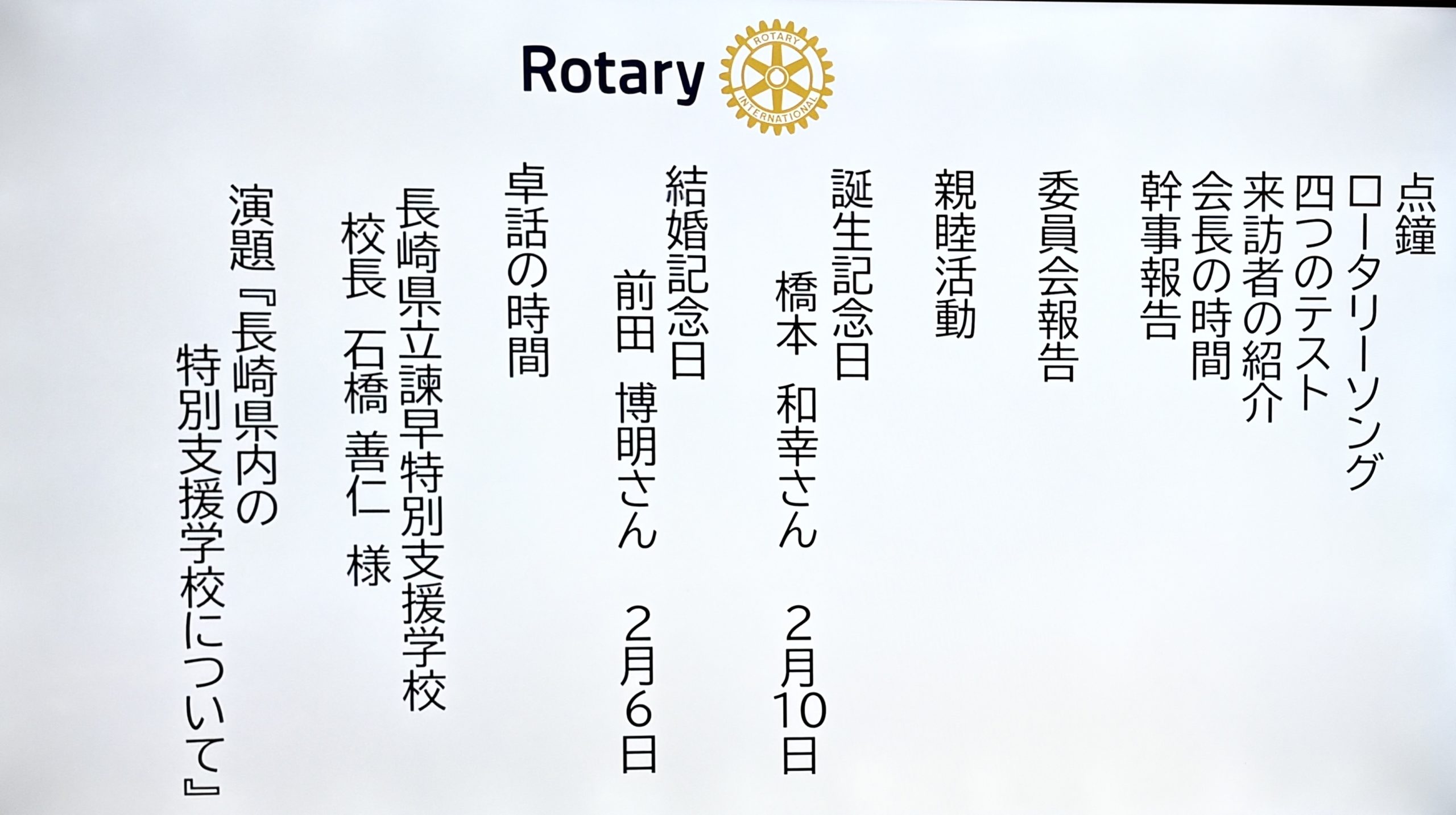 2月6日 第3101回例会 外部卓話例会