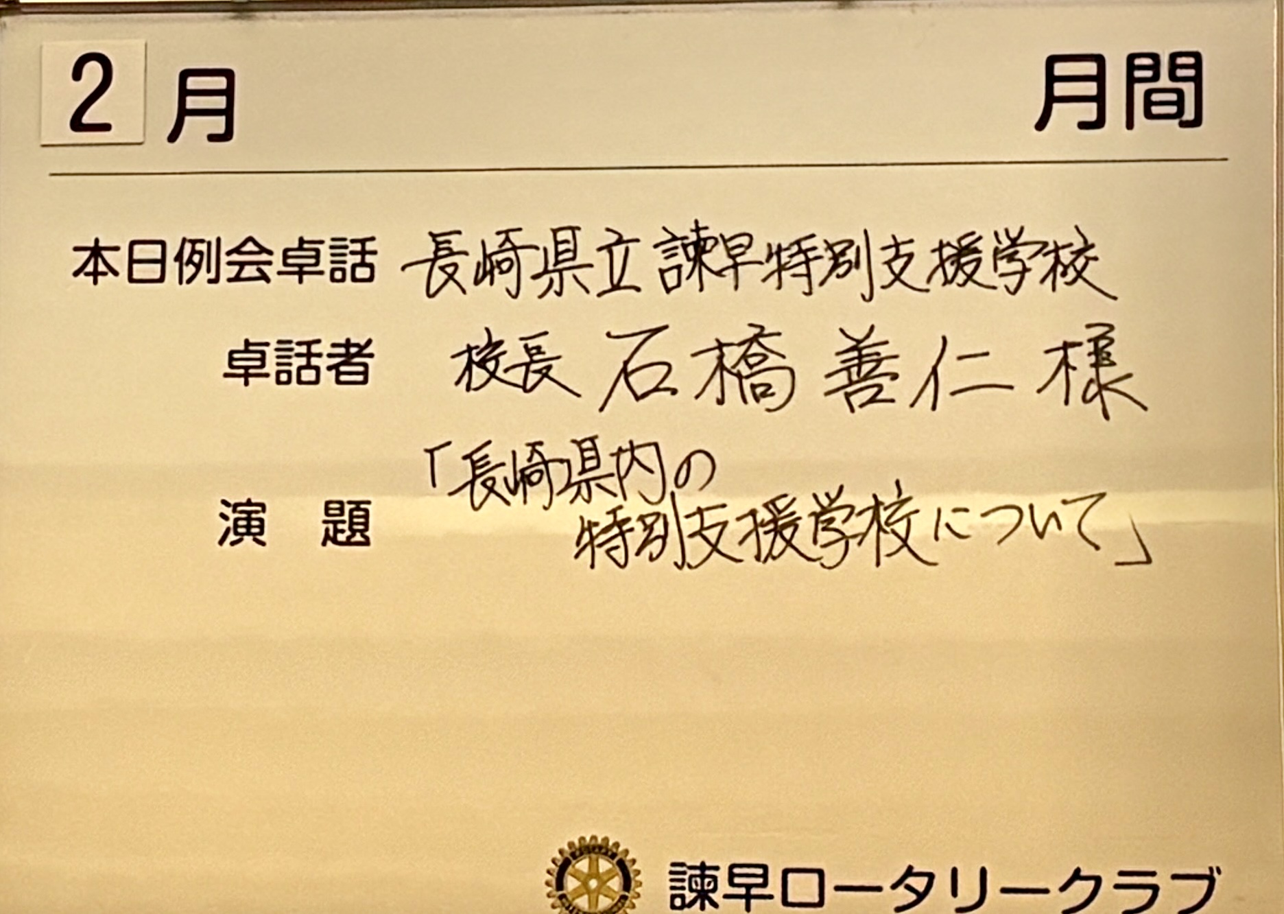 【卓話者】 長崎県立諫早特別支援学校 校長石橋 善仁様