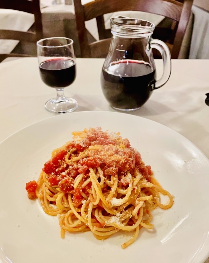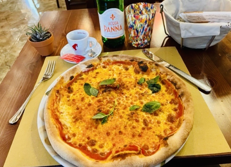 ところで、イタリアと言えば何と言っても食です。ピザもパスタもおいしかったのですが、特に忘れられないのはスライスの牛肉ステーキです。焼き具合はミディアムなのですが、醸成してあるのか、くさみはまったくありませんでした。見た目は半分生肉(なまにく)に思われたのですが、それにバルサミコ酢をつけて食べるのです。これがめちゃくちゃ美味しかったです。まずビール、次に赤ワイン。ぐいぐいいけました。